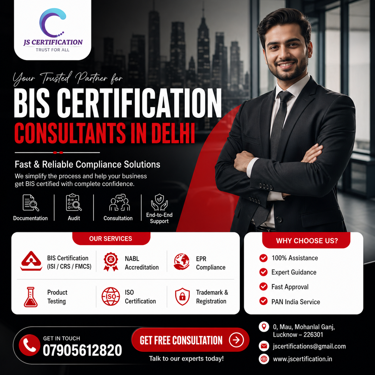 We cater to manufacturers, importers, startups, and enterprises across Delhi and PAN India, ensuring fast approvals and hassle-free certification. With a strong focus on compliance and quality, JS Certification helps your business meet regulatory requirements and build market trust seamlessly.